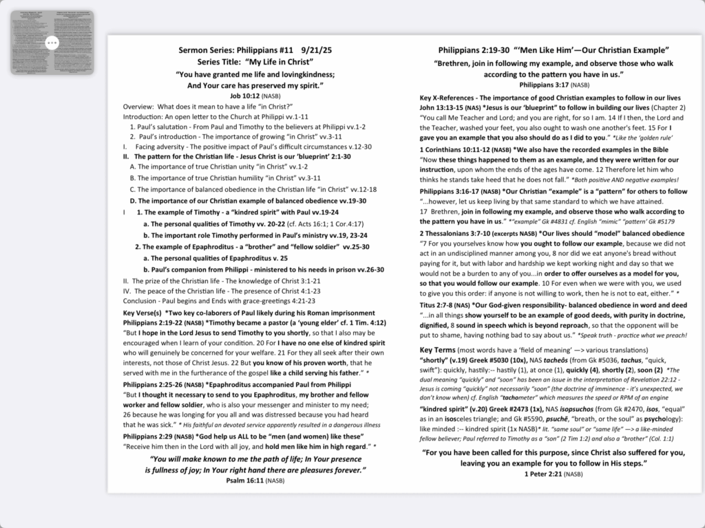 Sermon Notes 9/21/25 “ ‘Men Like Him’-Our Christian Example”